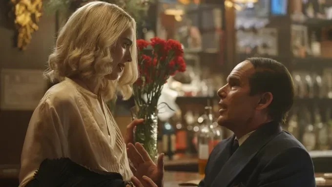 There is a smooth flow in Kaplow’s script as Hart discourses with everyone in the restaurant’s bar, to more private conversations including empathetic bartender Eddie (Bobby Cannavale), wistful writer E.B. White (Patrick Kennedy), and protégé Elizabeth Wieland (Margaret Qualley), whose actual correspondence with Hart inspired this script. This seamless conversation is an examination of love in all its words and musical notes, matching the legacy of Hart’s lyrical contribution to Rodgers’ music. After all, Hart is the writer of great lovesick lines belonging to the titular song, including “Without a dream in my heart.”