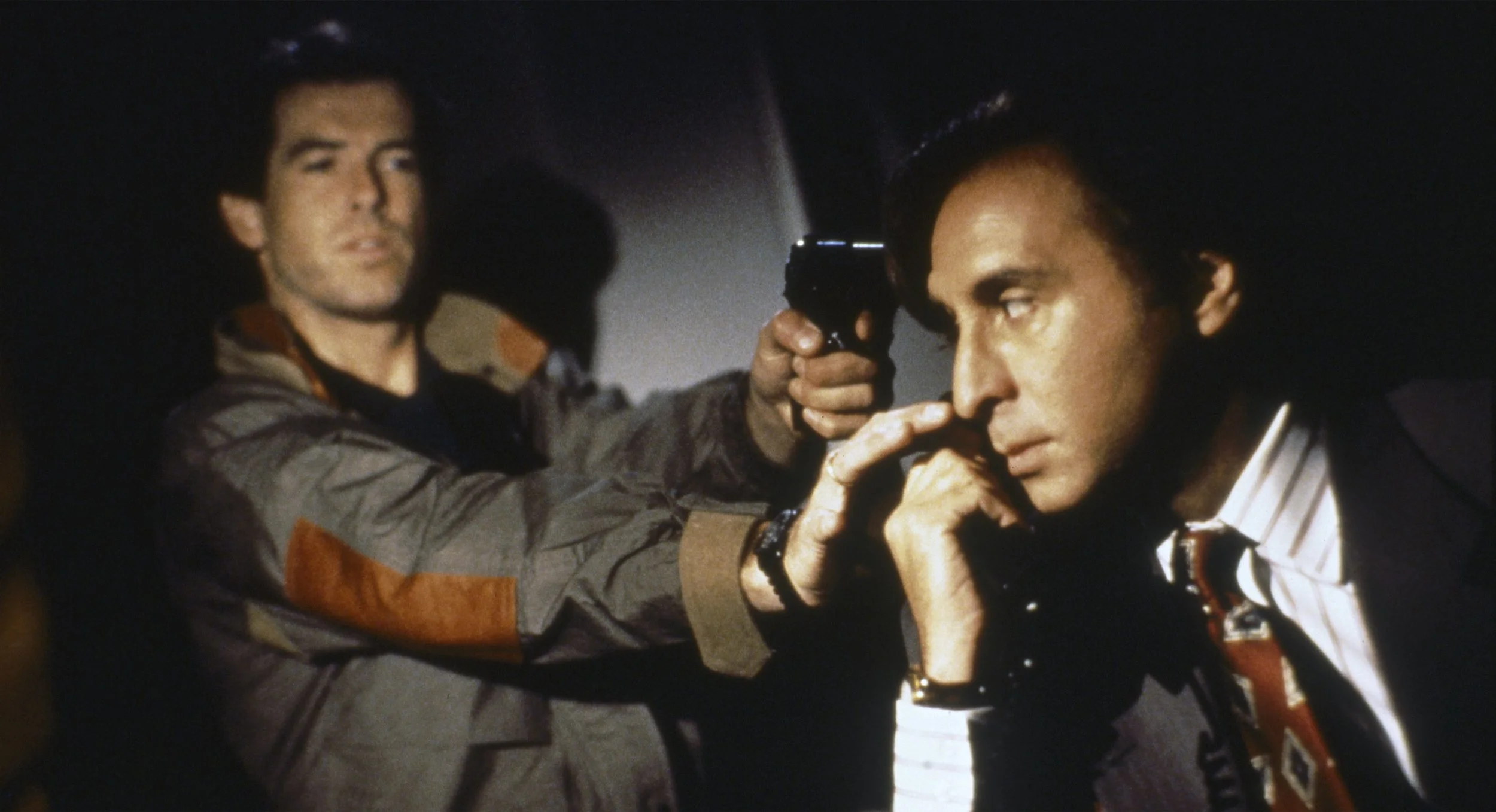 Director Christian Duguay is best known as the director of the sequels to David Cronenberg’s Scanners, movies best known for their willingness to capitalize on the infamous head explosion from the first film by upping the ante time and time again. Once you learn what makes Live Wire what it is, you’ll understand why that’s important. In theory, it’s a plot about FBI bomb expert Danny O’Neill (Pierce Brosnan) as he tries to uncover a conspiracy behind American senators who seem to keep spontaneously combusting. About 35% of the movie is about that, the rest actually being about how his wife Terry (Lisa Eilbacher) has left him for Senator Frank Traveres (Ron Silver) and has laid a restraining order on him. Brosnan spends much of the movie roundly ignoring this restraining order, acting like a human trash bag every chance he can, and somehow still thinking that his wife will come back to him if he just keeps acting like a distillation of all the worst “divorced guy” stereotypes at all times. Nary a scene goes by, be it a crime scene inspection or a dressing down by his superiors, without someone asking about his wife’s exploits with Traveres. It hilariously hangs over the movie in a way that really makes you wonder what screenwriter Bart Baker was going through at this time. This is decidedly not Zulawski’s Possession though, so eventually they have a very elaborate mid-90s sex scene and (spoiler alert) make up after almost dying several times. If the plot mattered, I would be more shy about these details, but you don’t even know the plot yet. Before getting into that, here’s a disclaimer: for fans of insane old-school action movies with huge explosions and absurd stunts, stop reading now and find this movie any way you can, because once the secret of Live Wire is revealed, I can’t put it back in the box. Go ahead, I’ll wait.