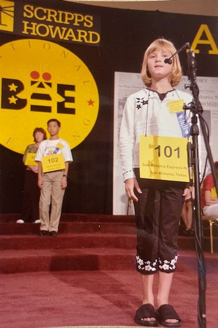You'll not be surprised to hear that I was a huge nerd as a kid (and as an adult). I grew up on a cattle ranch outside New Braunfels, and I'm an only child, so books were my main source of entertainment. I didn't have any particular interest in spelling, though, and I'm not sure I even knew what a spelling bee was until one day when my elementary school had everyone come to the library and start spelling words aloud. I won that bee and moved on to regionals, where I placed second one year and first the next, allowing me to compete in the national bee. Spelling bees did not make me popular, but I did win a dictionary as big as my head at regionals and got a free trip to D.C., where I lost early and got to spend the rest of the week being a tourist on Scripps' dime.